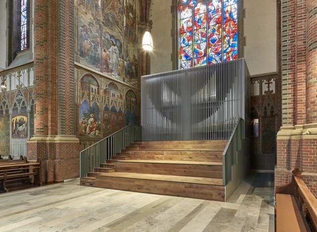 Das rekonstruierte Fernwerk ist als Chororgel im südlichen Querschiff errichtet. Das davor platzierte vierstufige Podest bietet ausreichend Platz für den Chor.